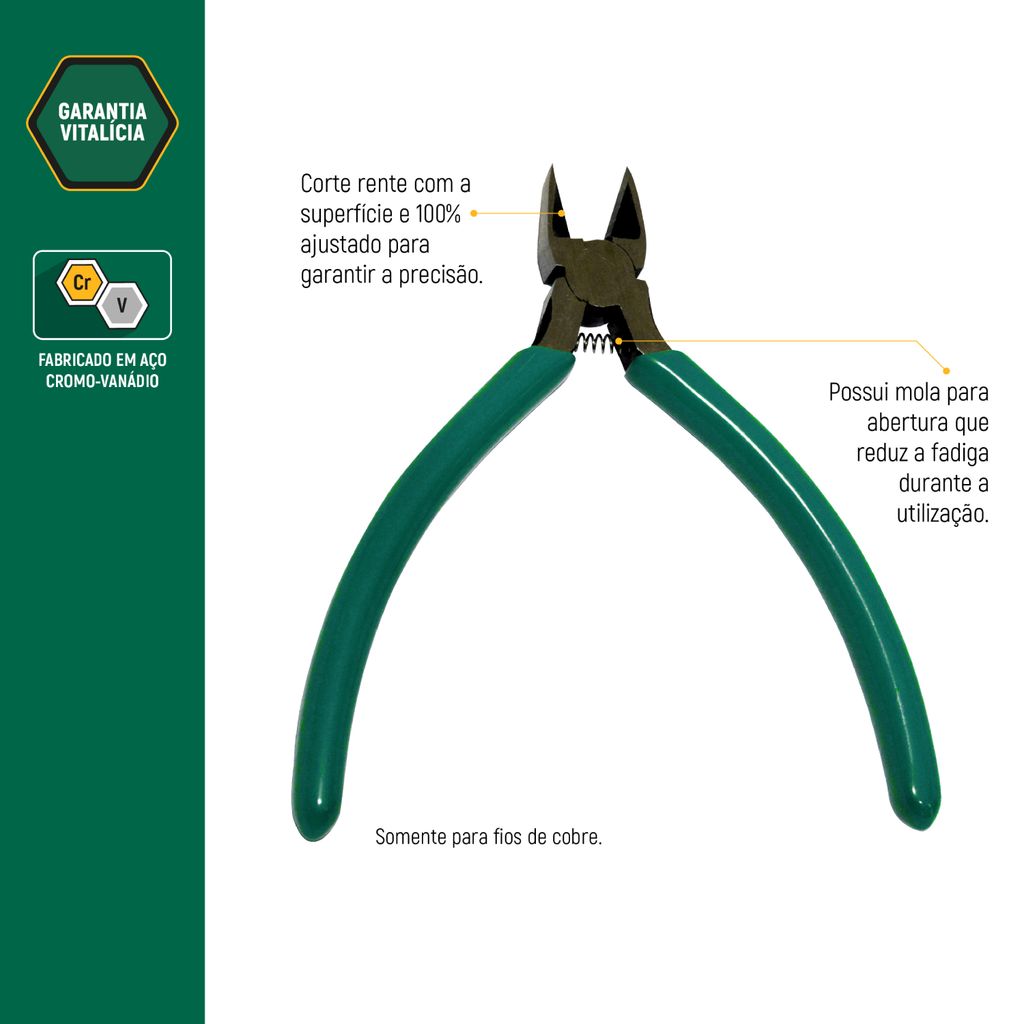 Fabricado em Aço Cromo Vanádio, proporciona maior resistência e vida útil à ferramenta. Além de possuir mola para abertura, reduzindo a fadiga do usuário durante a utilização.