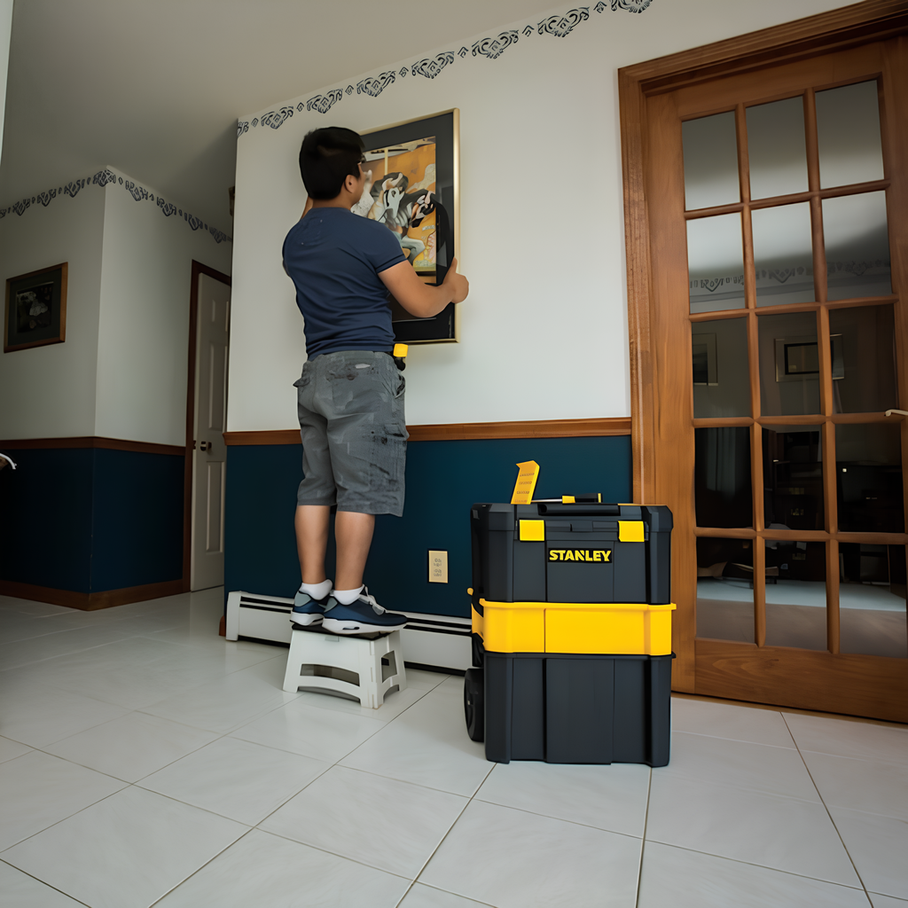 Caixa gabinete com rodas oferece 3 soluções de armazenamento em 1 produto: Compartimento inferior, bandeja intermediária e caixa de ferramentas superior. Com organizadores superiores para organização de peças pequenas e rodas revestidas de 7" para manobrabilidade conveniente e fácil. Ideal para armazenagem e transporte de diversas ferramentas.