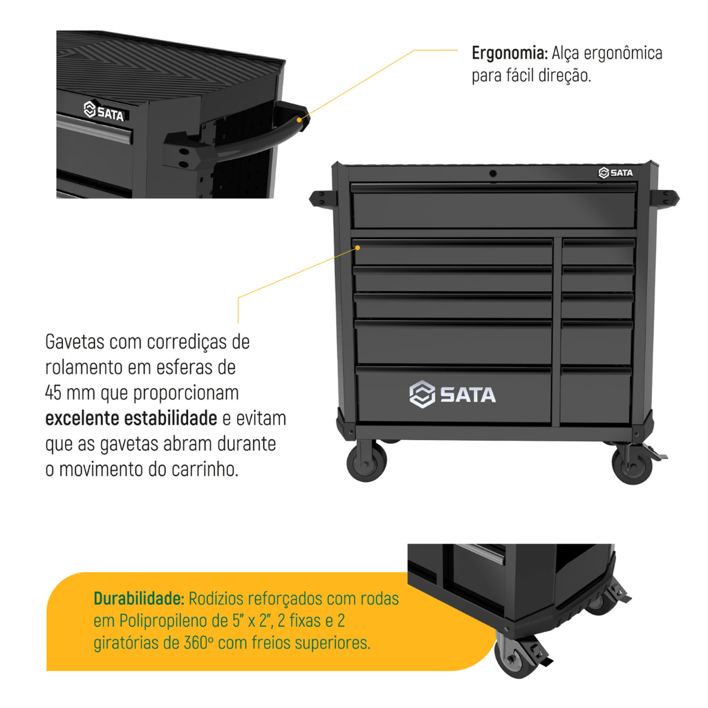CARRO P/ FERRAMENTA C/ 11 GAVETAS SATA PRETO - ST95114G-B