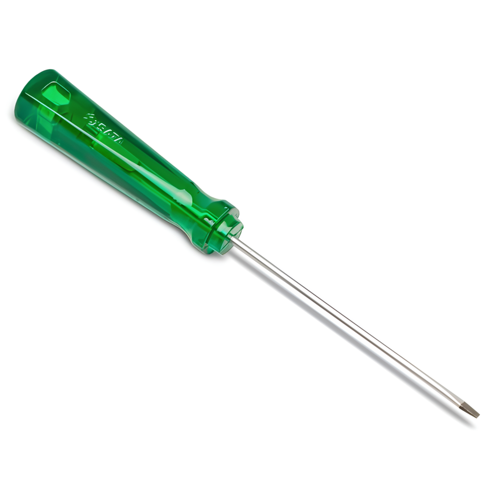 Chave De Fenda com cabo PVC translucido verde ergonômico 1/4X6” SATA com ponta oxidada para evitar descascamento e proporcionar mais segurança. Possui a haste toda temperada com acabamento niquelado e cromado.