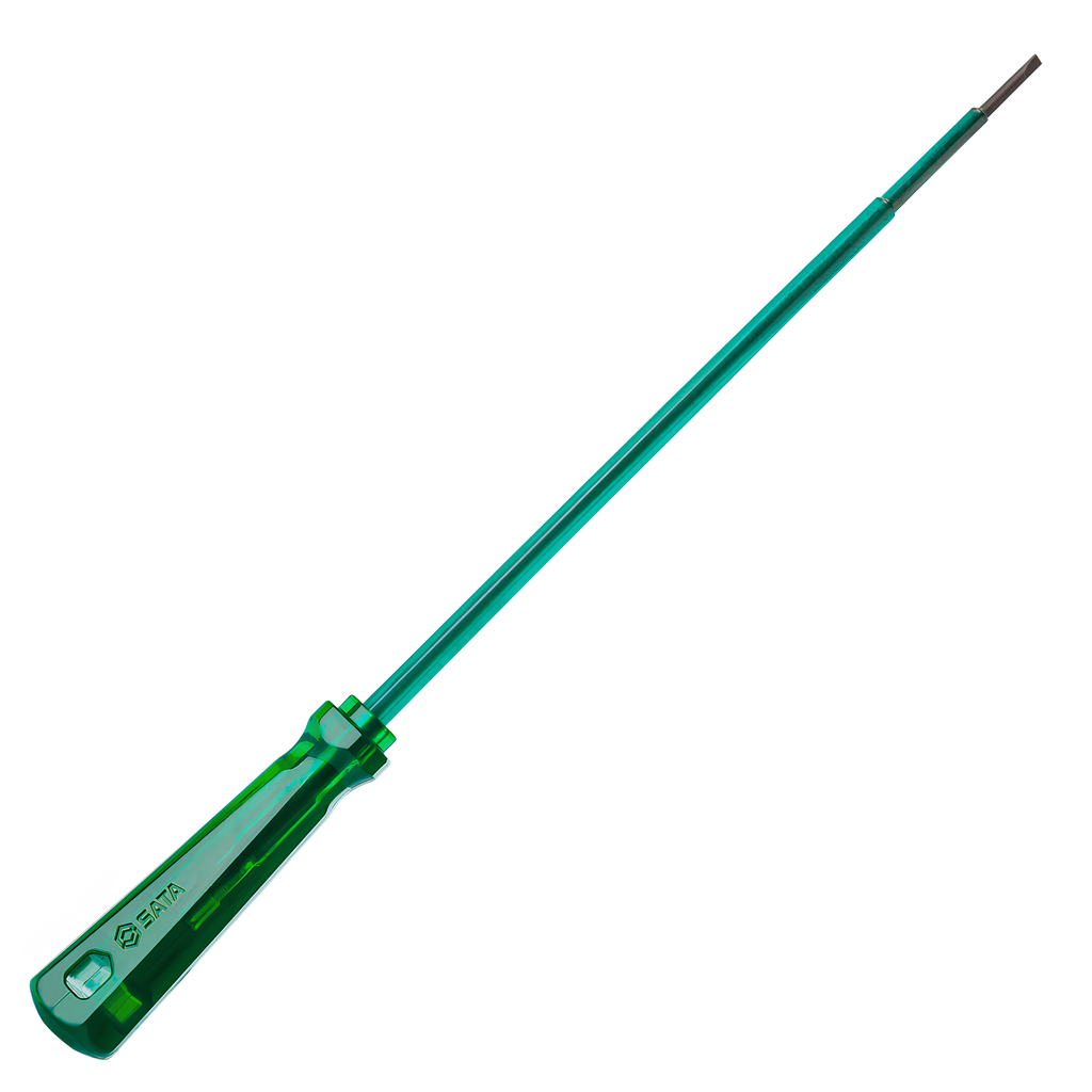 Chave De Fenda Isolada com cabo PVC translucido verde 5/16x10" SATA com haste isolada de acordo com NR10. Garante proteção ao profissional quando utilizadas em trabalhos com áreas energizadas.