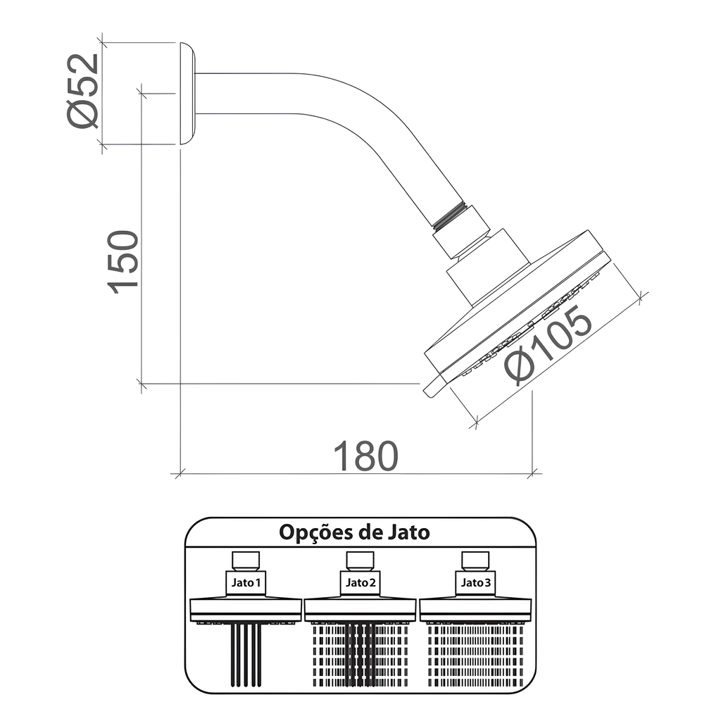 Ducha de Parede Redonda Loren Trio Cromado 7048404 7002 C16 Lorenzetti