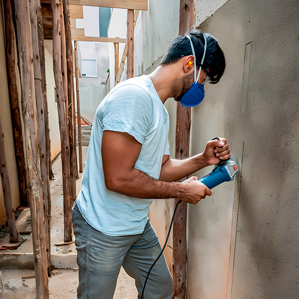 Esmerilhadeira Angular ideal para cortes e desbastes em diferentes materiais metálicos, como ferro e aço, e ainda pode ser utilizada para corte em alvenaria em concreto, de acordo com o acessório correto, como discos abrasivos ou discos diamantados.