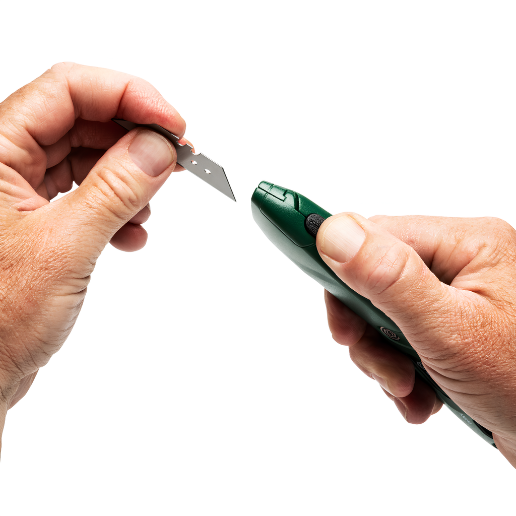 - Duplo sistema de segurança: Retração imediata e automática da lâmina ao soltar o botão superior ou ao final do corte.