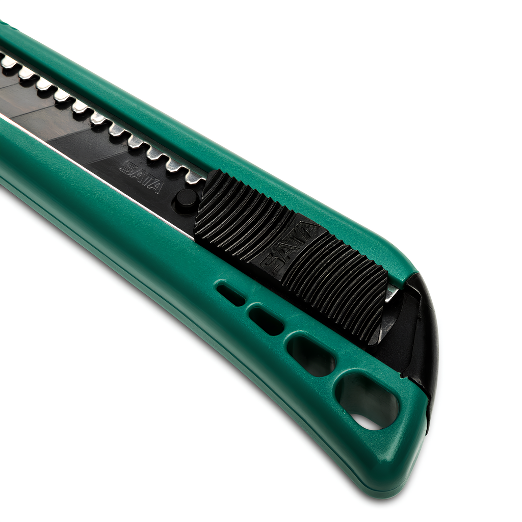 O Estilete Retrátil 18mm SATA - ST93422A oferece máxima praticidade e segurança devido à sua lâmina com 8 segmentos que com um simples gesto, é possível quebrar um segmento e ter uma lâmina nova e afiada, garantindo uma eficiência contínua, além de evitar acidentes causados por lâminas cegas, sendo indispensável para profissionais que lidam com cortes precisos em pisos vinílicos, papéis de parede, drywall e carpintaria em geral.