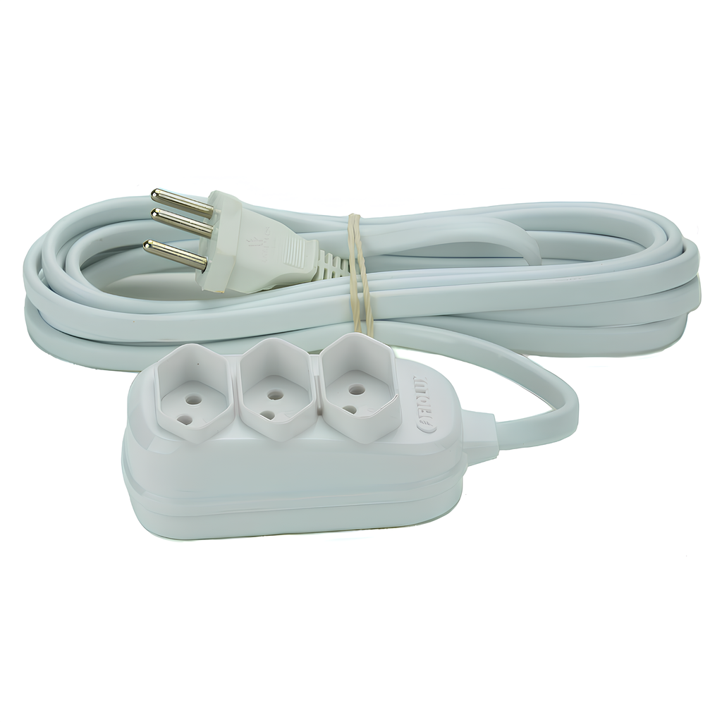 Extensão Elétrica Tripolar Branca 10 Metros 3 Tomadas 2P+T 10A Bivolt Fiolux