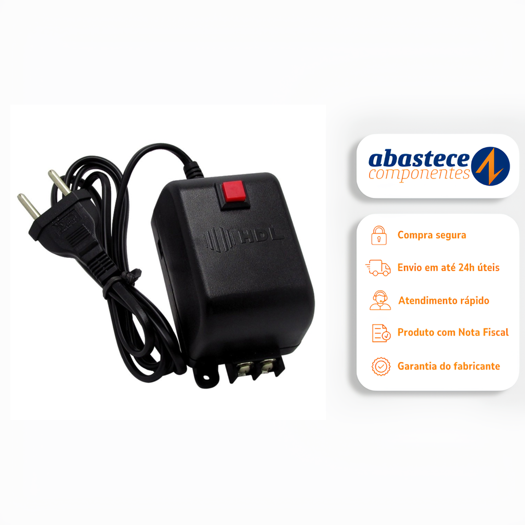 • Fonte padrão de 12Vca/0.5A da HDL para Porteiros Eletrônicos Residenciais (exceto modelo F8AZ). Coletivos e Central de Portaria CI2000