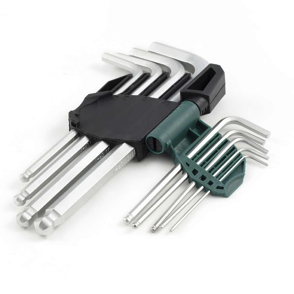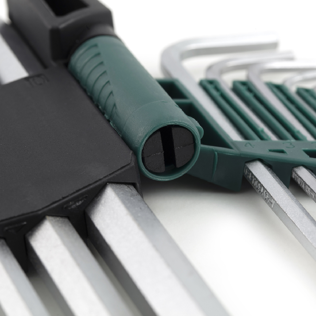 O jogo de Chave Hexagonal Abaulada Longa é extremamente versátil oferece 30º de inclinação na execução da tarefa em locais de difícil acesso pela sua ponta abaulada.