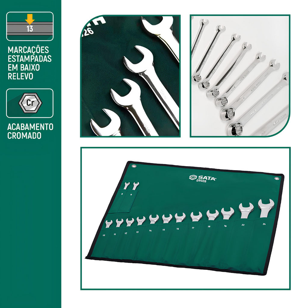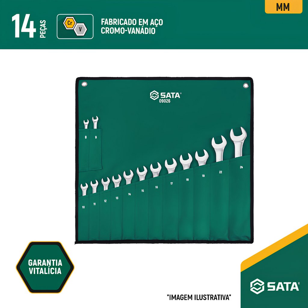 Jogo Chaves Combinadas Espelhada De 8 A 24Mm Com 14Pçs St09026g Sata