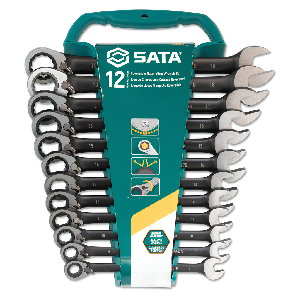 Para maior conveniência, rolos de ferramentas ou organizadores permitem que você carregue suas ferramentas sem complicações quando estiver em trânsito. O acabamento cromado totalmente polido oferece uma aparência limpa e moderna. Cobertas por garantia vitalícia, as chaves SATA ajudam você a realizar o trabalho.