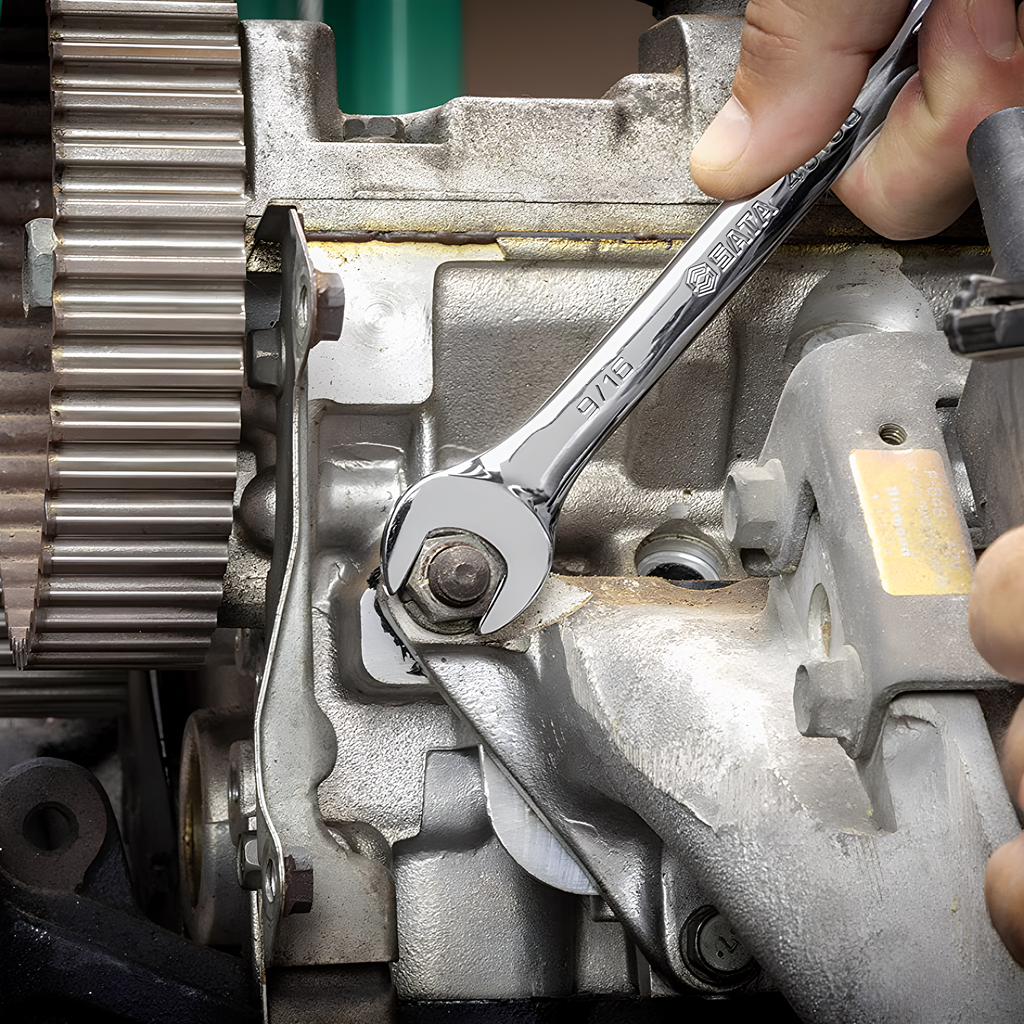 Chave combinada com estrela em ângulo de 15° para melhor acesso. Menor desgaste: as chaves não espanam a cabeça de parafusos e porcas;