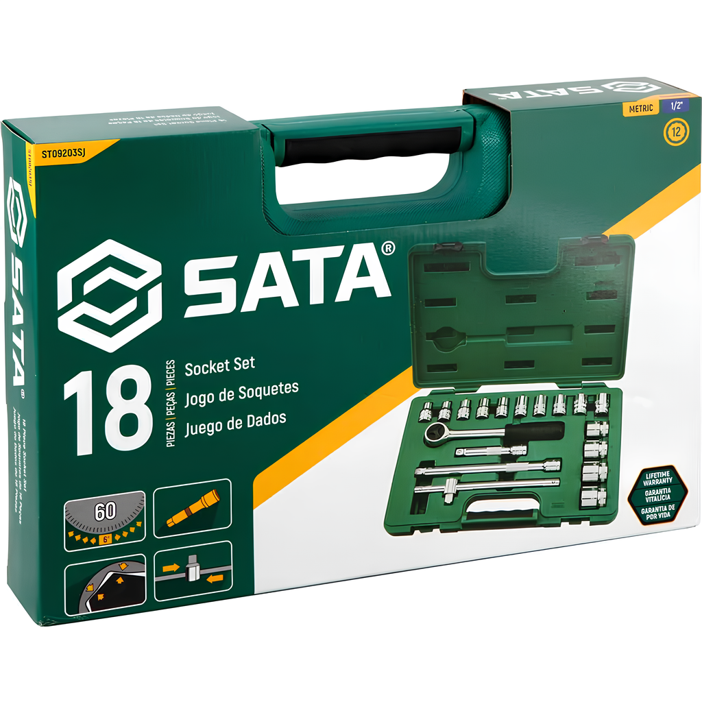 Jogo de Soquete Estriado 1/2" 10 a 32 ST09203SJ SATA 18 pcs