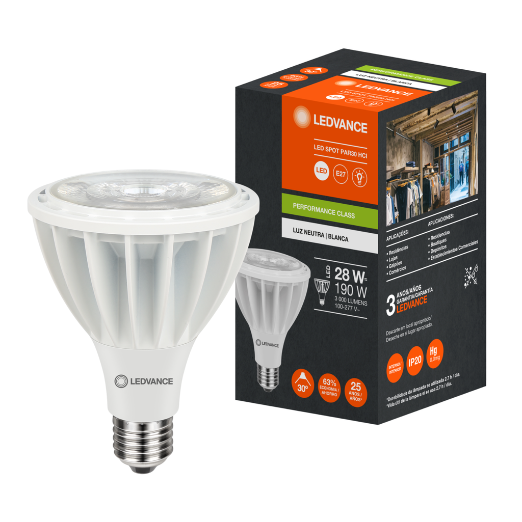 Lampada Led Par30 Hci Irc90 28W 4000K 3000Lm 30° Ip20 Bivolt E27 G3 Ledvance