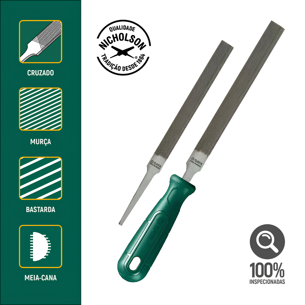 As Limas SATA contam o Selo de Qualidade Crescent Nicholson, sendo produzidas no Brasil e 100% inspecionadas para entregar a melhor experiência e solução completa de qualidade a todos os profissionais dos demais segmentos de atuação em todo o país.