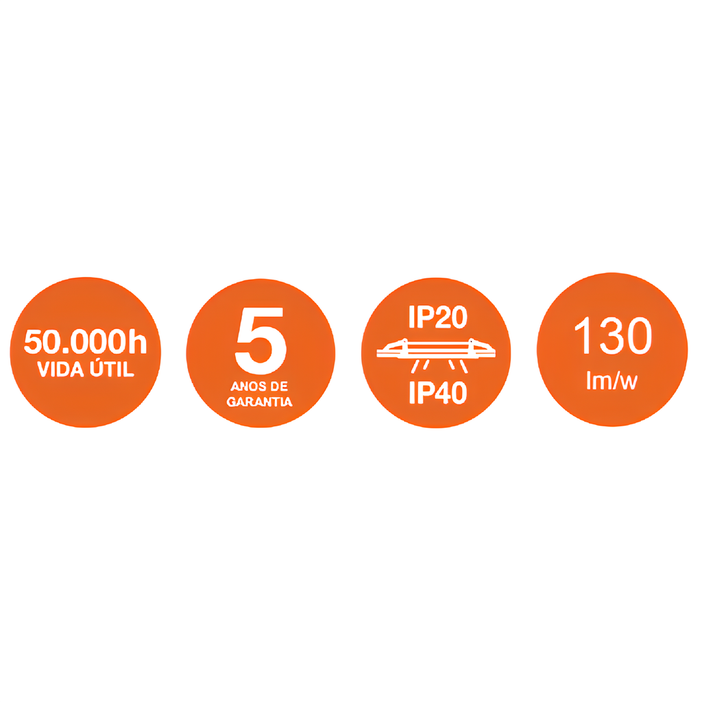 - Muito resistente, com acabamento em alumínio e difusor em PS.