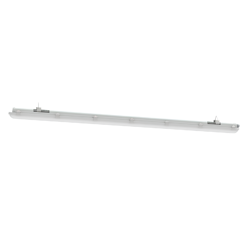 Luminária LED à prova de poeira e vapor para montagem no teto.