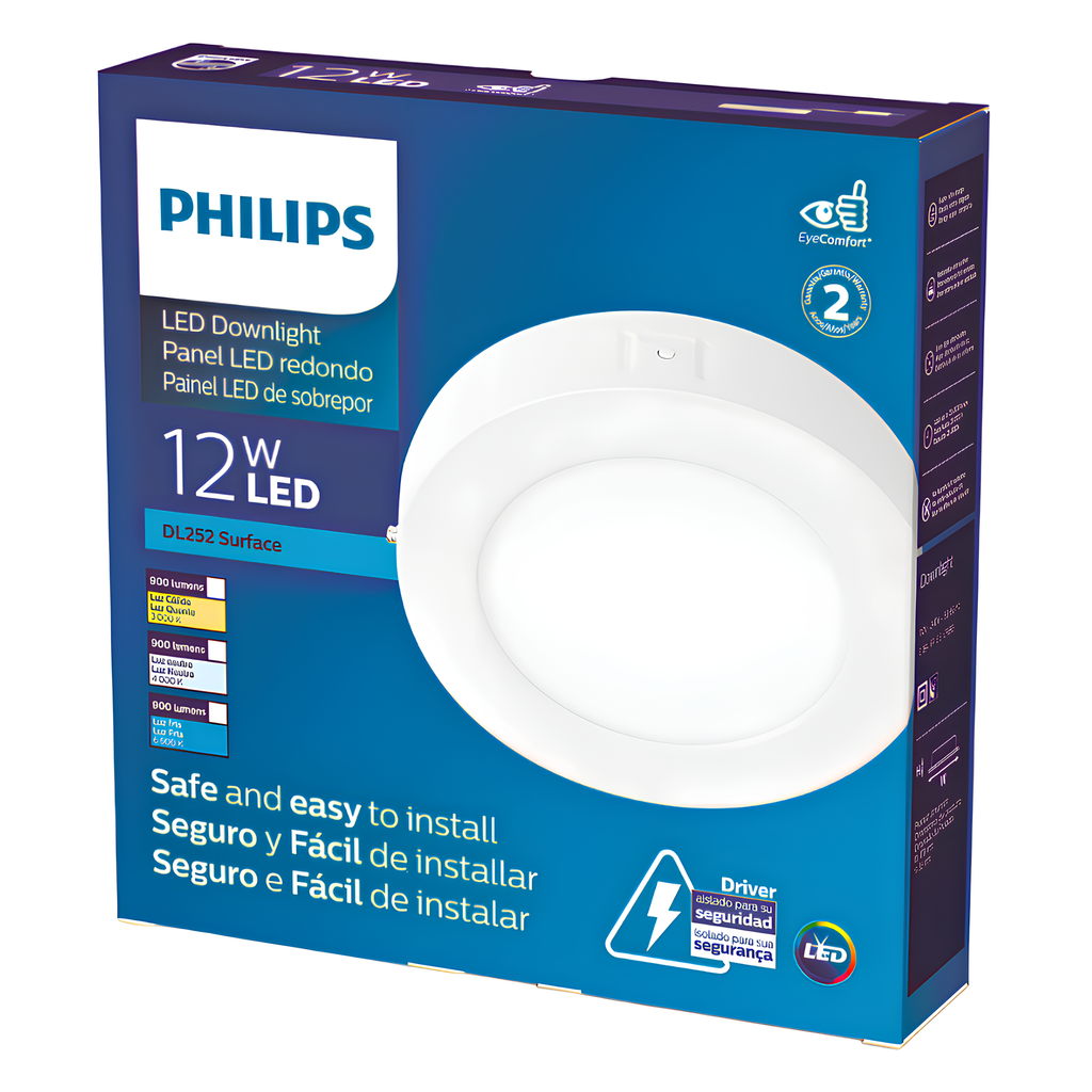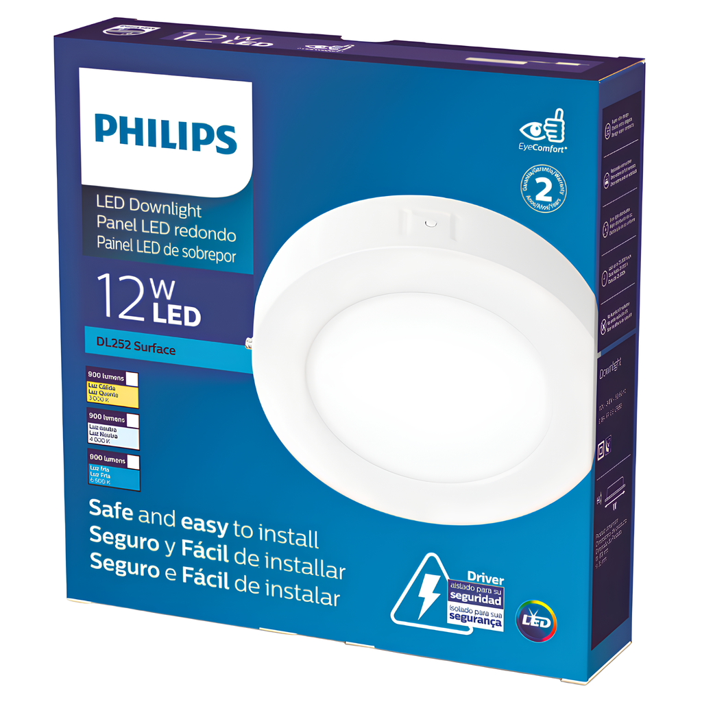 Luminaria Led Sobrepor Redonda DL252 16,1Cm 12W 400Lm 110° Ip20 Bivolt Philips