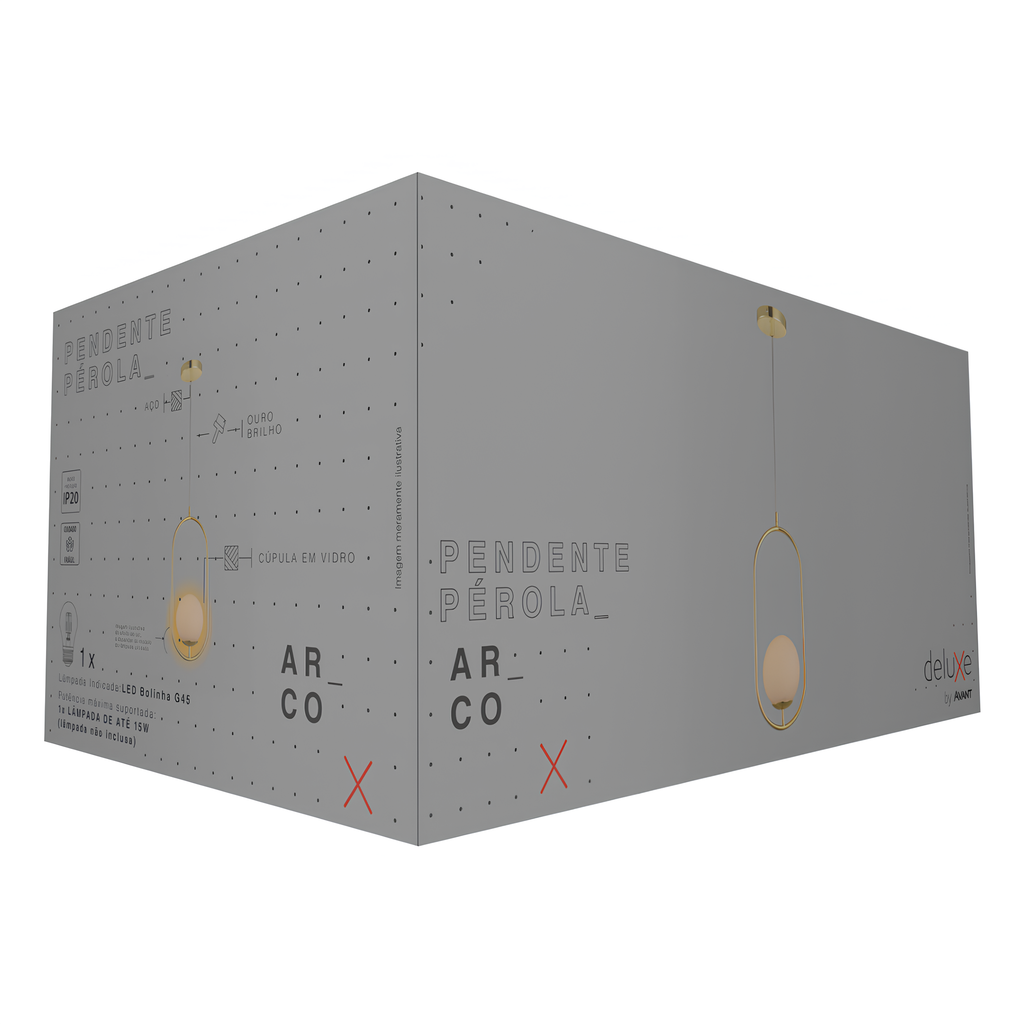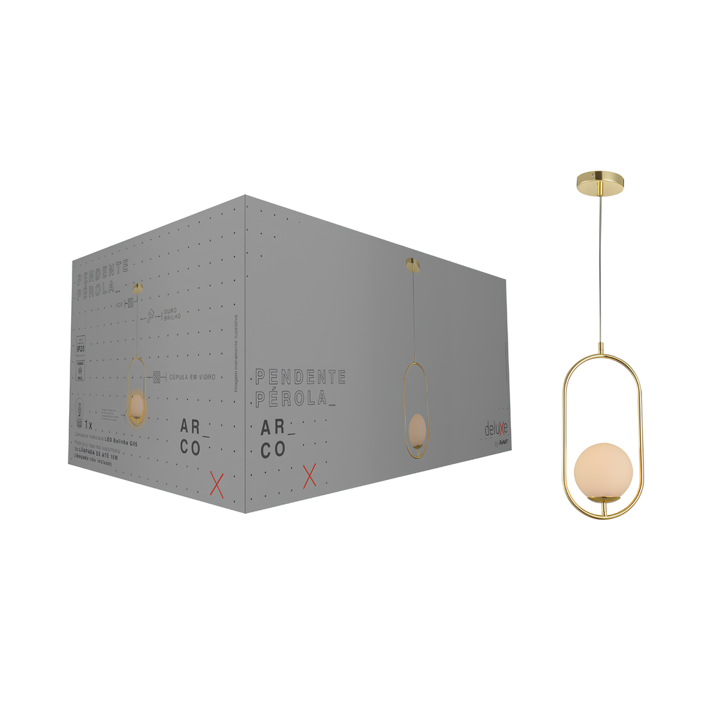Especialmente, essa opção é entregue na cor Ouro. O pendente conta com material: Aço e Vidro, porém é possivelmente encontrar dentro desse segmento, pendente alumínio (metal), pendente cristal, pendente madeira (ou MDF) ou mesmo pendente vidro (o famoso pendente bola / pendente globo de vidro).