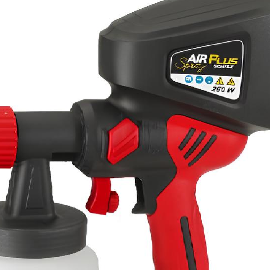 A pistola pulverizadora Air Plus Spray 250W é prática e simples para uso em pequenos serviços residenciais. Seu jato é ajustável na vertical, na horizontal e na diagonal, sendo ideal para pulverizações de água, inseticidas, óleo, detergentes e pequenas pinturas com tinta à base de água ou solvente. Com design compacto e leve, permite a regulagem do fluxo. O equipamento inclui funil para teste de viscosidade e é de fácil limpeza por ter caneca desmontável.