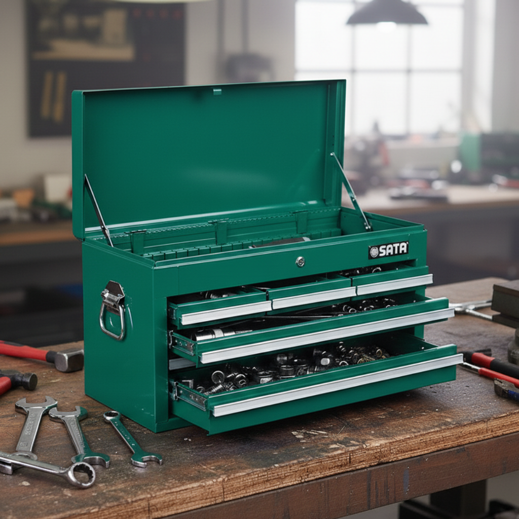 A Caixa tipo Gabinete com 6 Gavetas SATA é fabricada em aço carbono e possui o rolamento de esferas e forro de proteção emborrachado nas gavetas. Conta com fechamento com chave para maior segurança das ferramentas e bandeja auxiliar removível. Além de alças laterais ergonômicas que garantem melhor manuseio.