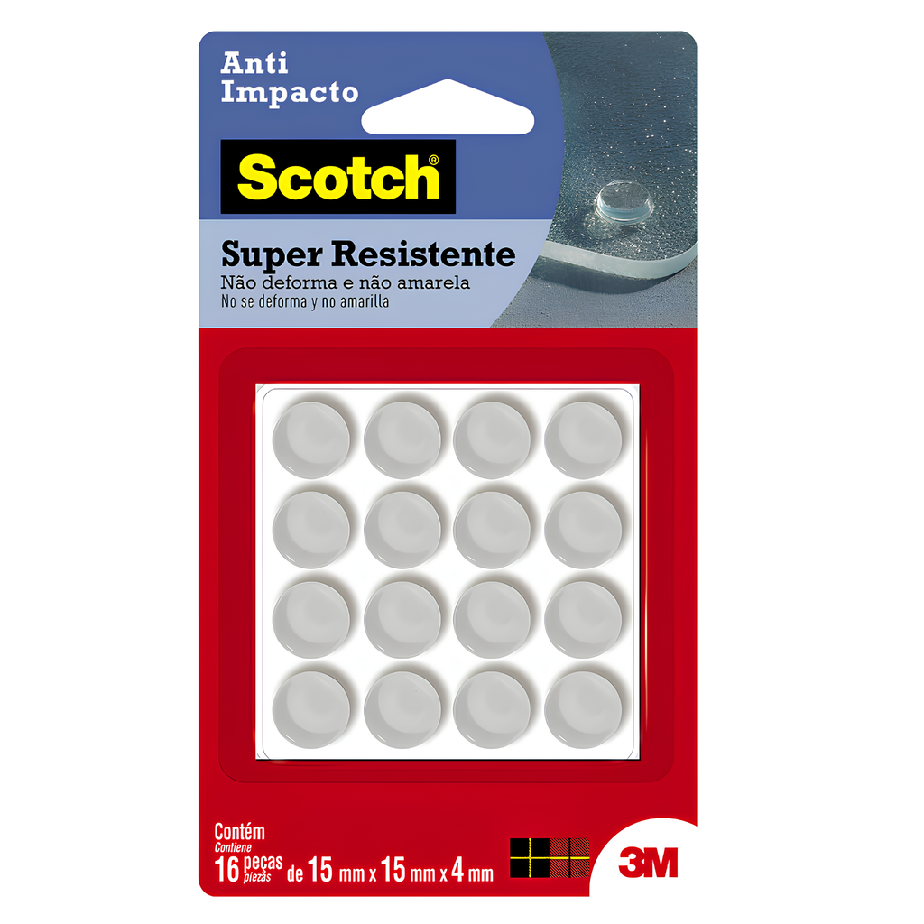 Com fixação rápida e forte, o Anti-Impacto 3M Scotch pode ser encontrado em diversos formatos e tamanhos. Com alta resistência, pode ser utilizado em portas, janelas, maçanetas, tampas, gavetas, esquadrias, tampos de mesa, gabinetes de cozinha e banheiro, portas de guarda-roupas, eletrodomésticos e computadores. É à prova d’água e possui a qualidade única da 3M, que garante qualidade e ótimos resultados. Como usar: Para aplicar o Anti-Impacto 3M Scotch as superfícies devem estar limpas, secas e livres de gorduras (ceras, óleos etc). Remova o liner protetor e aplique pressionando contra a outra superfície.