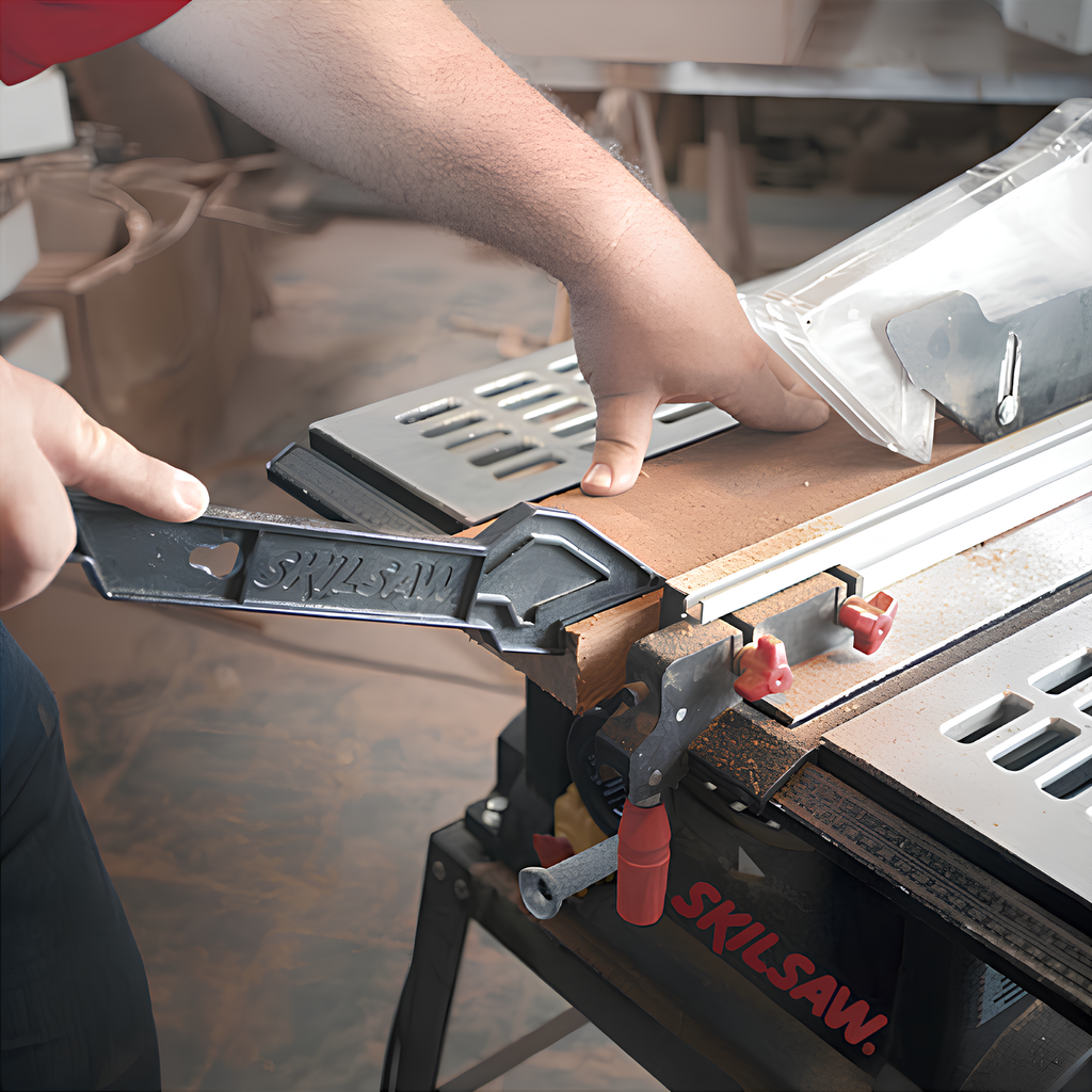 Seu design robusto e estável garante maior segurança e precisão durante o uso. Conta ainda com guia paralela de fácil ajuste, que assegura cortes retos e uniformes, além de ajuste de altura e inclinação do disco, permitindo maior versatilidade em cortes retos ou chanfrados.