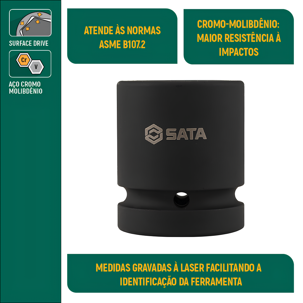 O Soquete Impacto Sextavado 3/4" de 35mm SATA é fabricado em aço cromo-molibdênio oferecendo a máxima segurança e resistência para trabalhos pesados.
