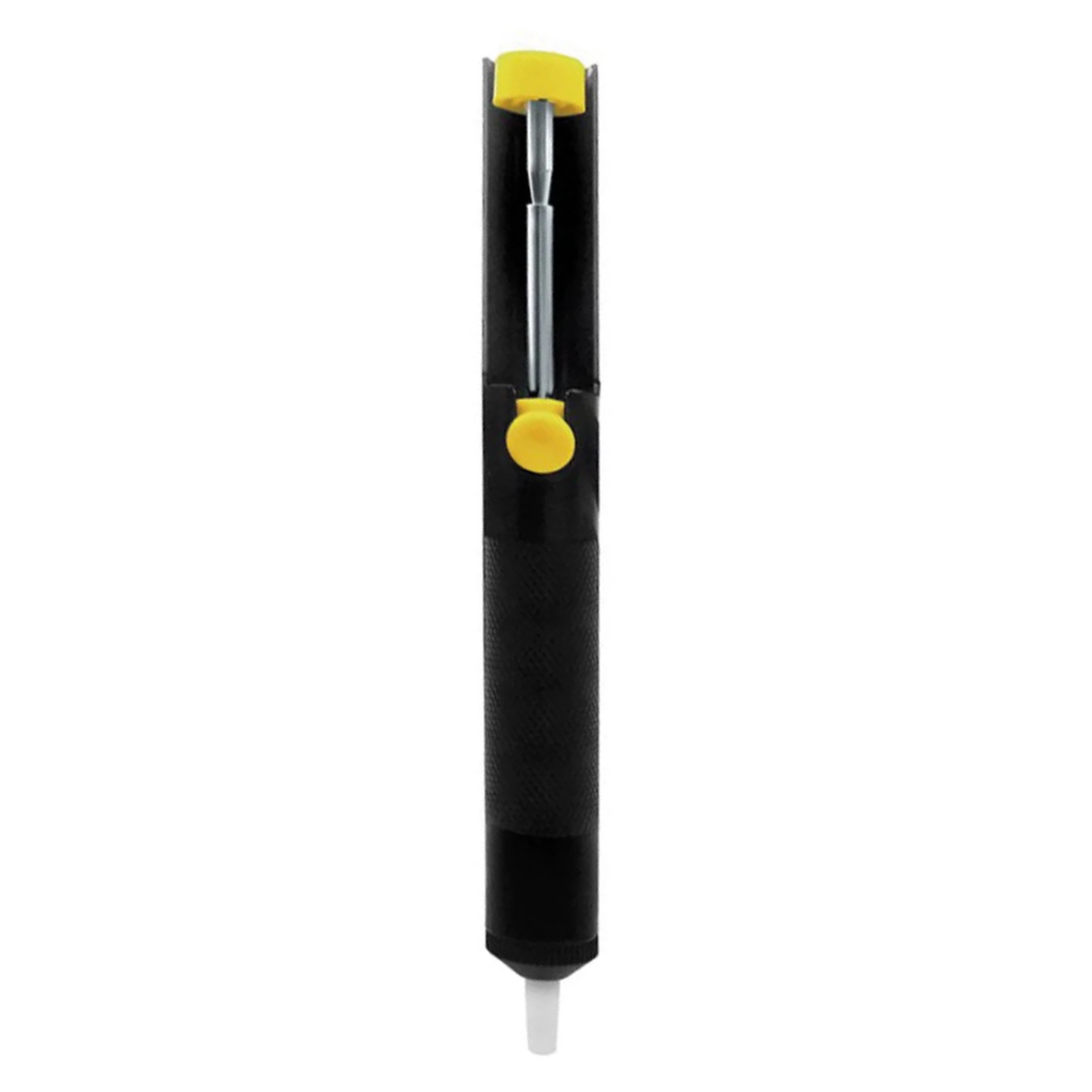 Sugador de solda HK-190 é ideal para substituição de componentes em placas de circuito impresso e pequenos protótipos. Basta pressionar o embolo superior e pressionar o botão lateral sobre a solda aquecida para removê-la através de sucção. O sugador conta com bico de teflon e corpo de alumínio. Ele auxiliará a remoção da solda com praticidade e eficiência.