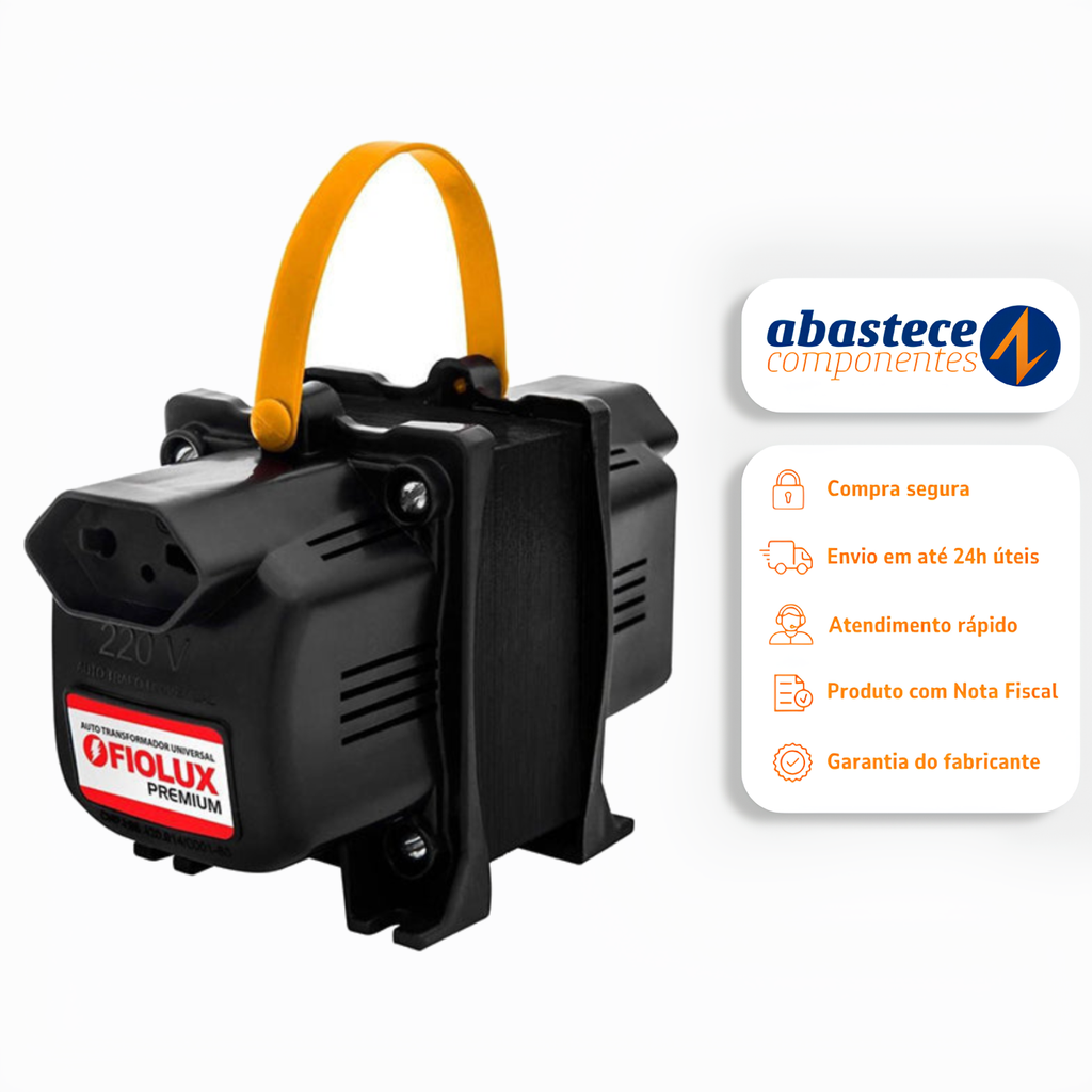 Os auto transformadores FIOLUX contam com a exclusiva alça que facilita o transporte e ainda possuem garantia de 2 anos, a maior do mercado.