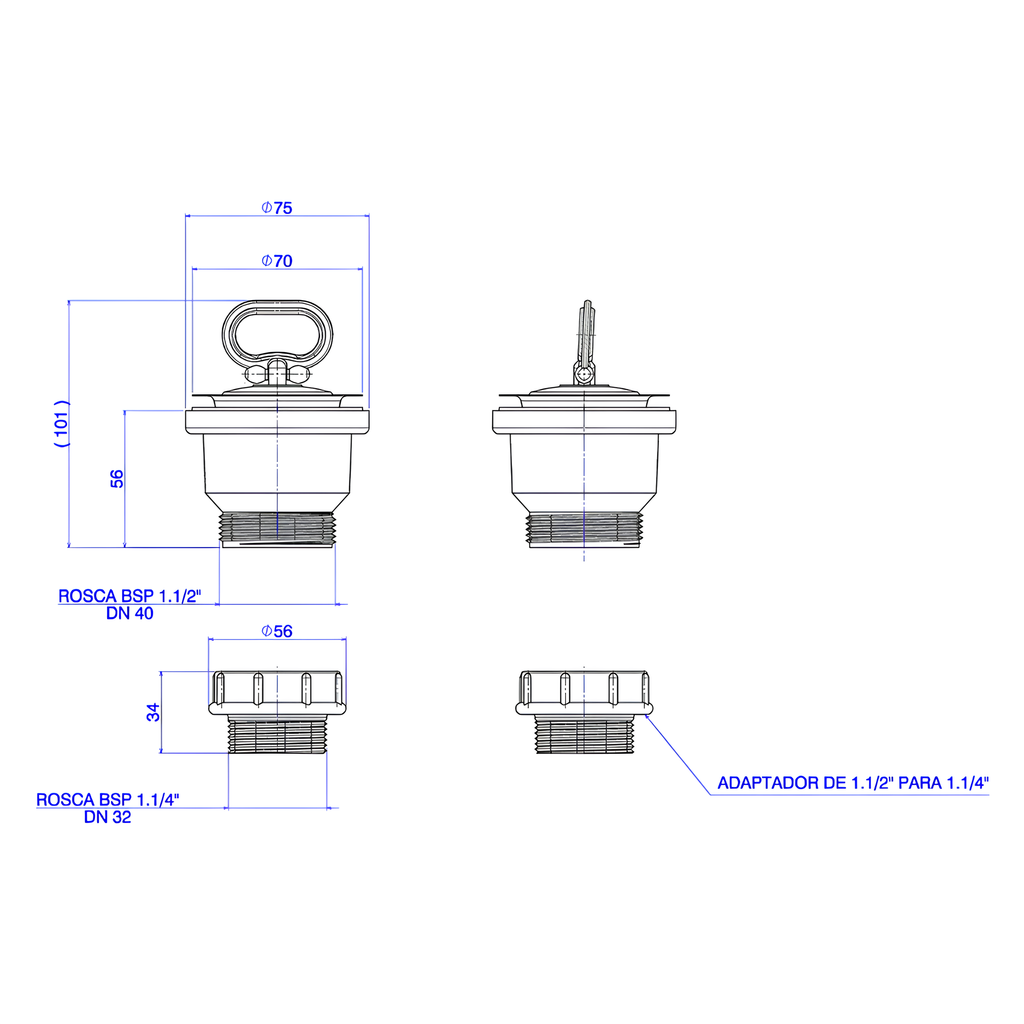 Contém na Embalagem: Acompanha adaptador de rosca de 1.1/2" para 1.1/4"